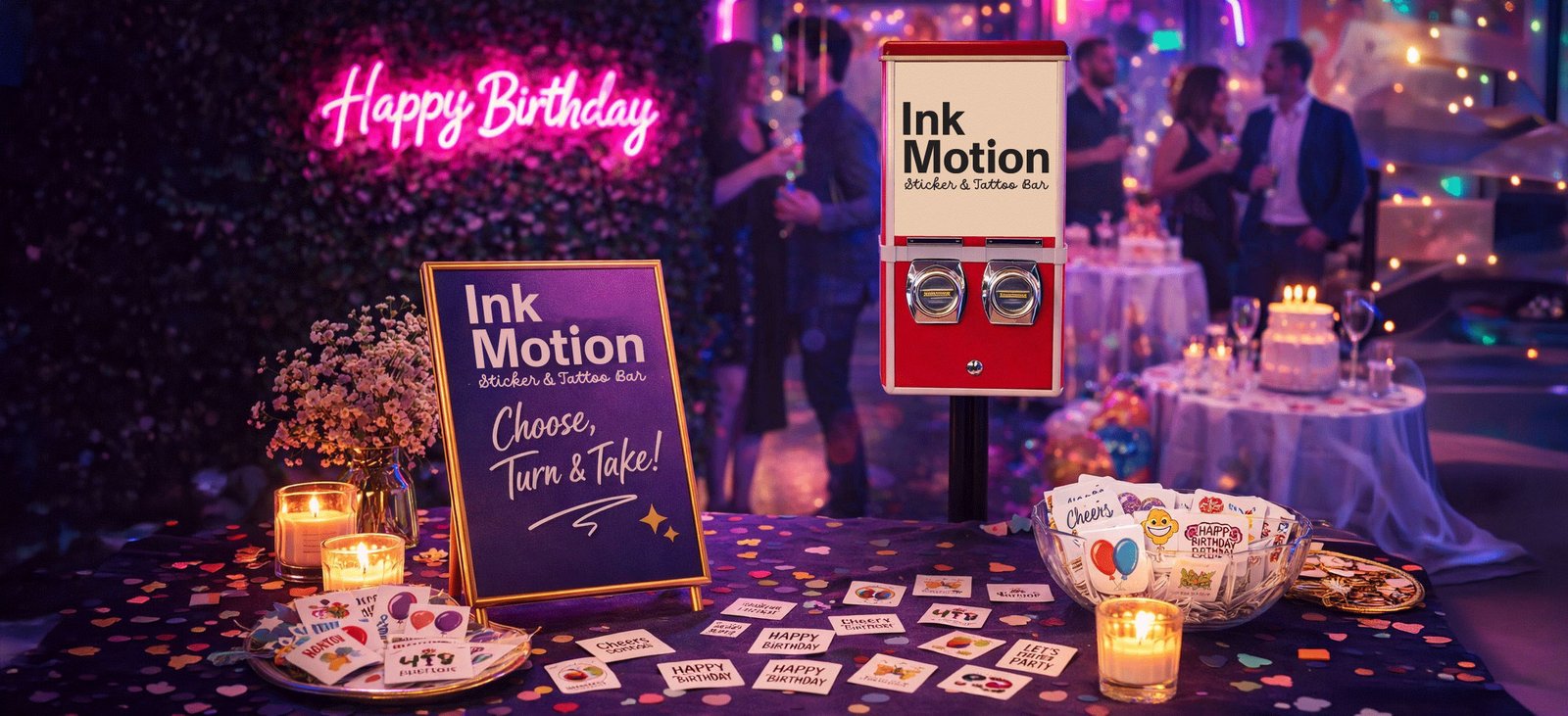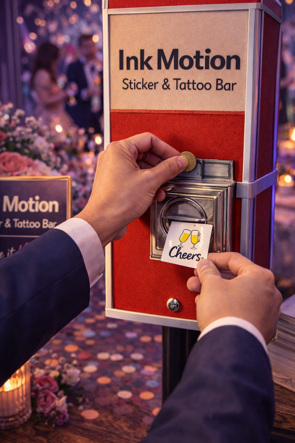 Guests choose a design, turn the machine and enjoy a custom sticker or temporary tattoo created for the celebration.