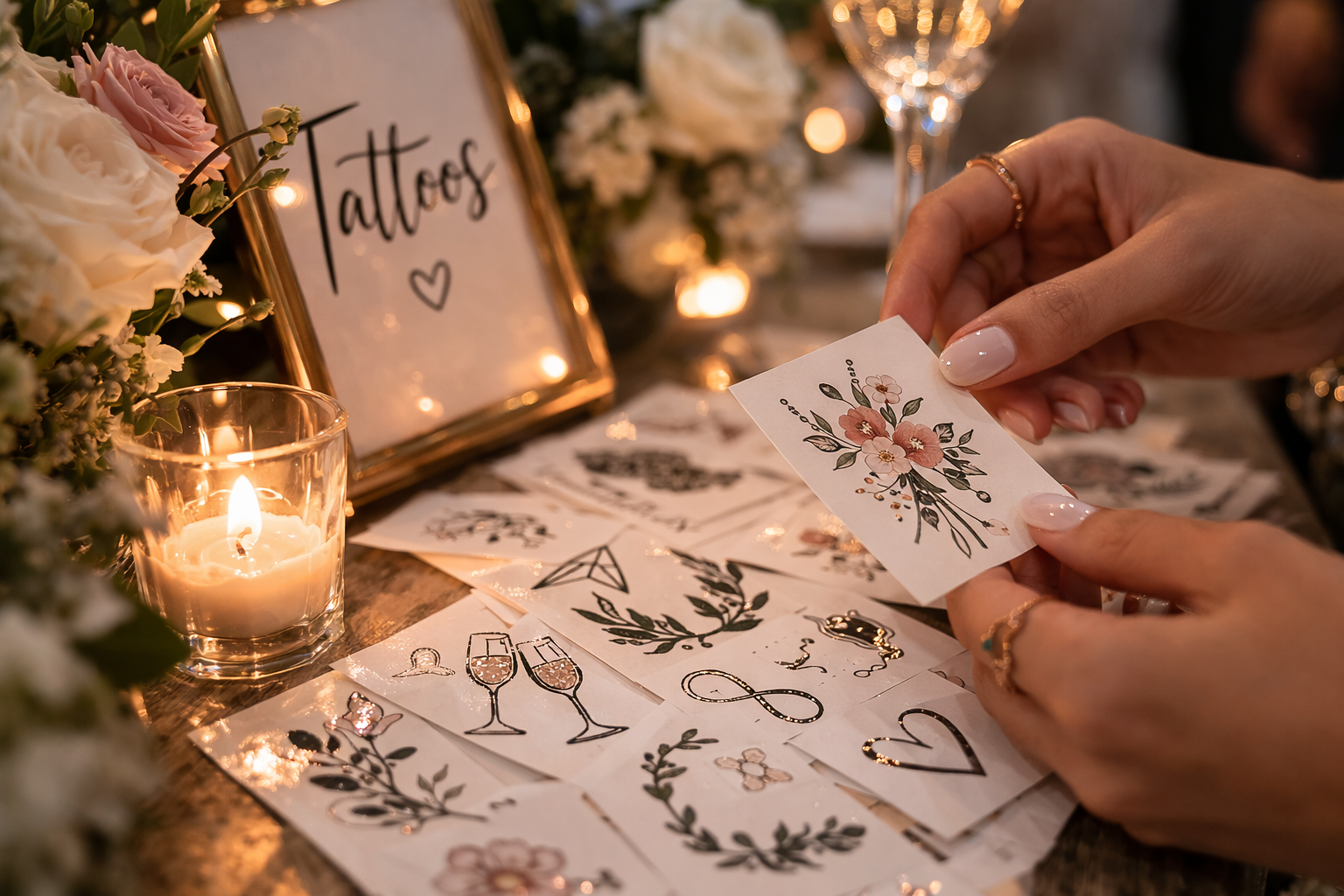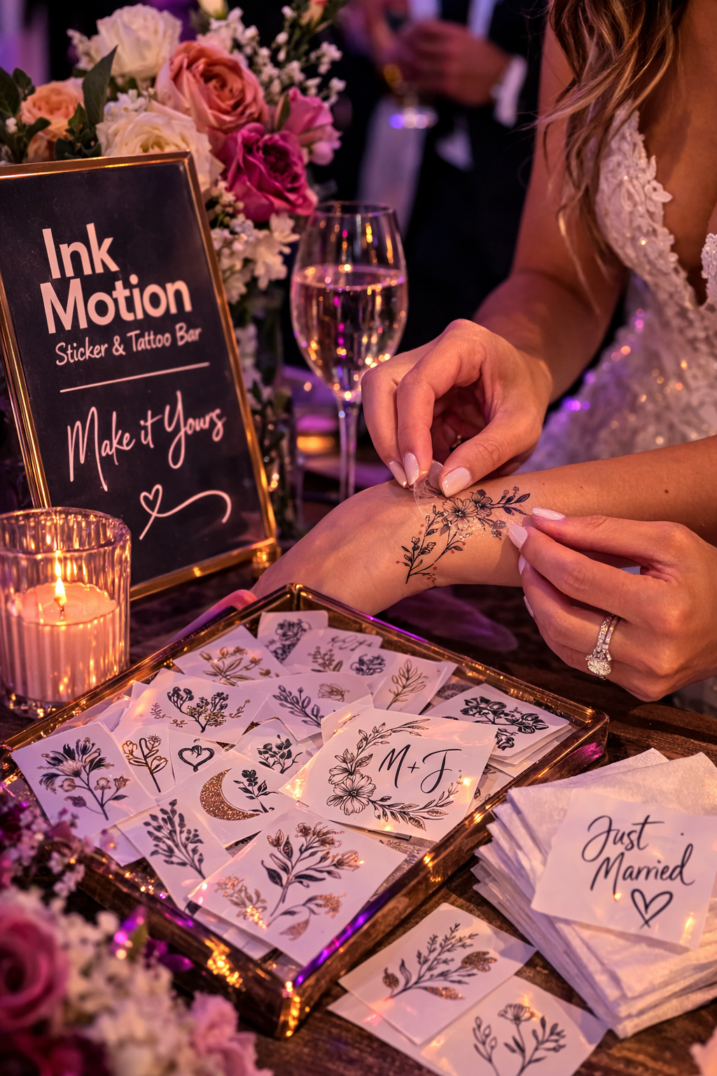 Guests can choose from a curated collection of custom stickers and temporary tattoos designed specifically for the event.